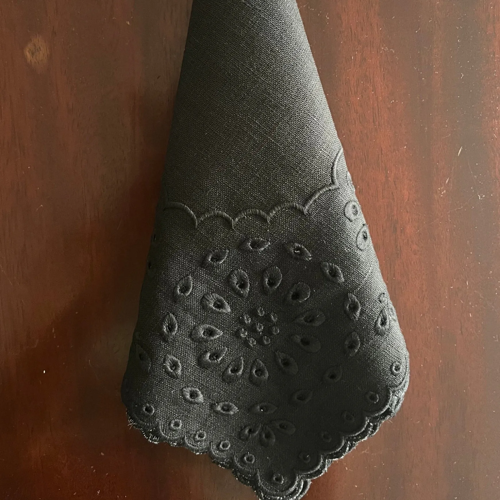 A set of dinner napkins featuring a timeless elegant eyelet pattern