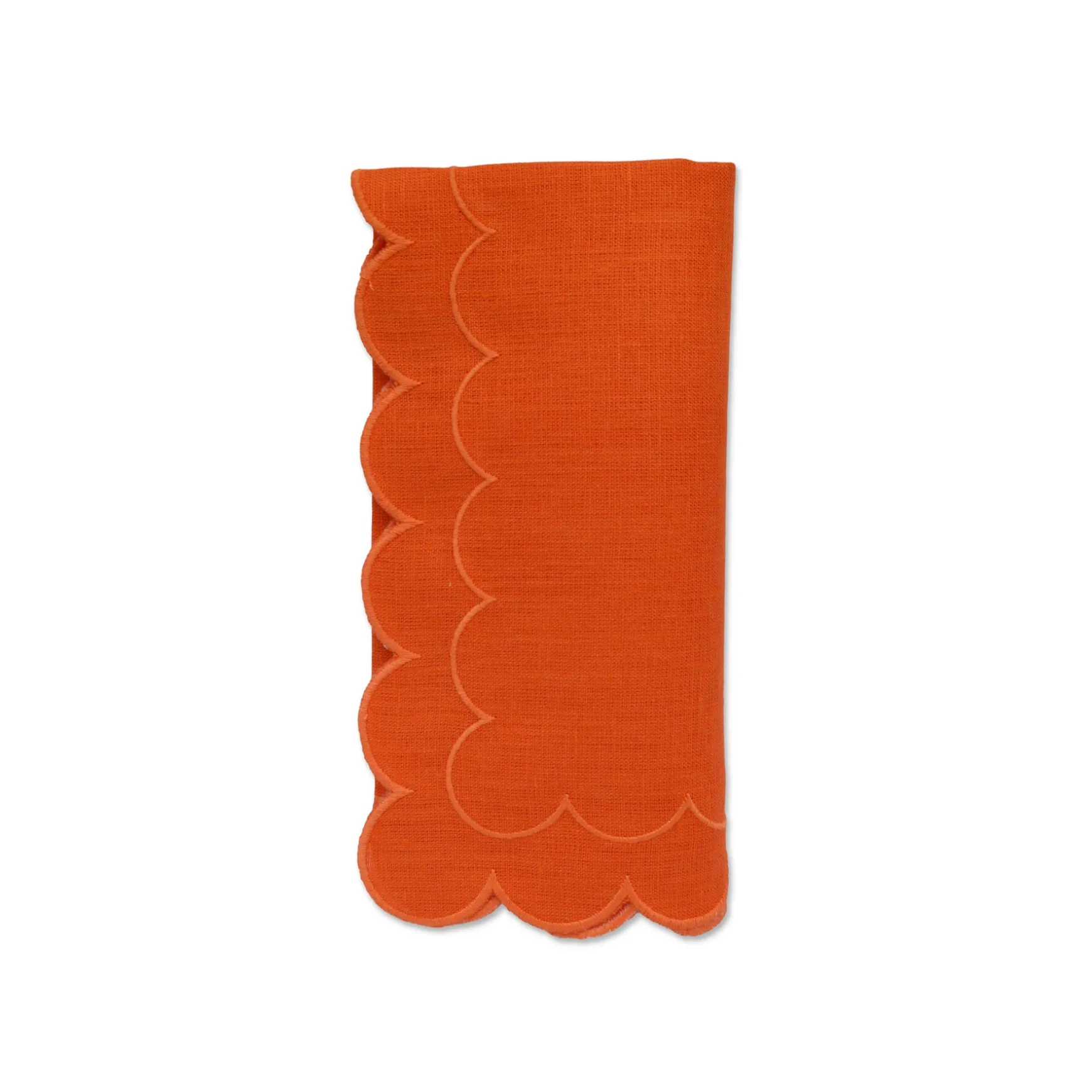 A set of dinner napkins featuring a timeless rounded scalloped edge
