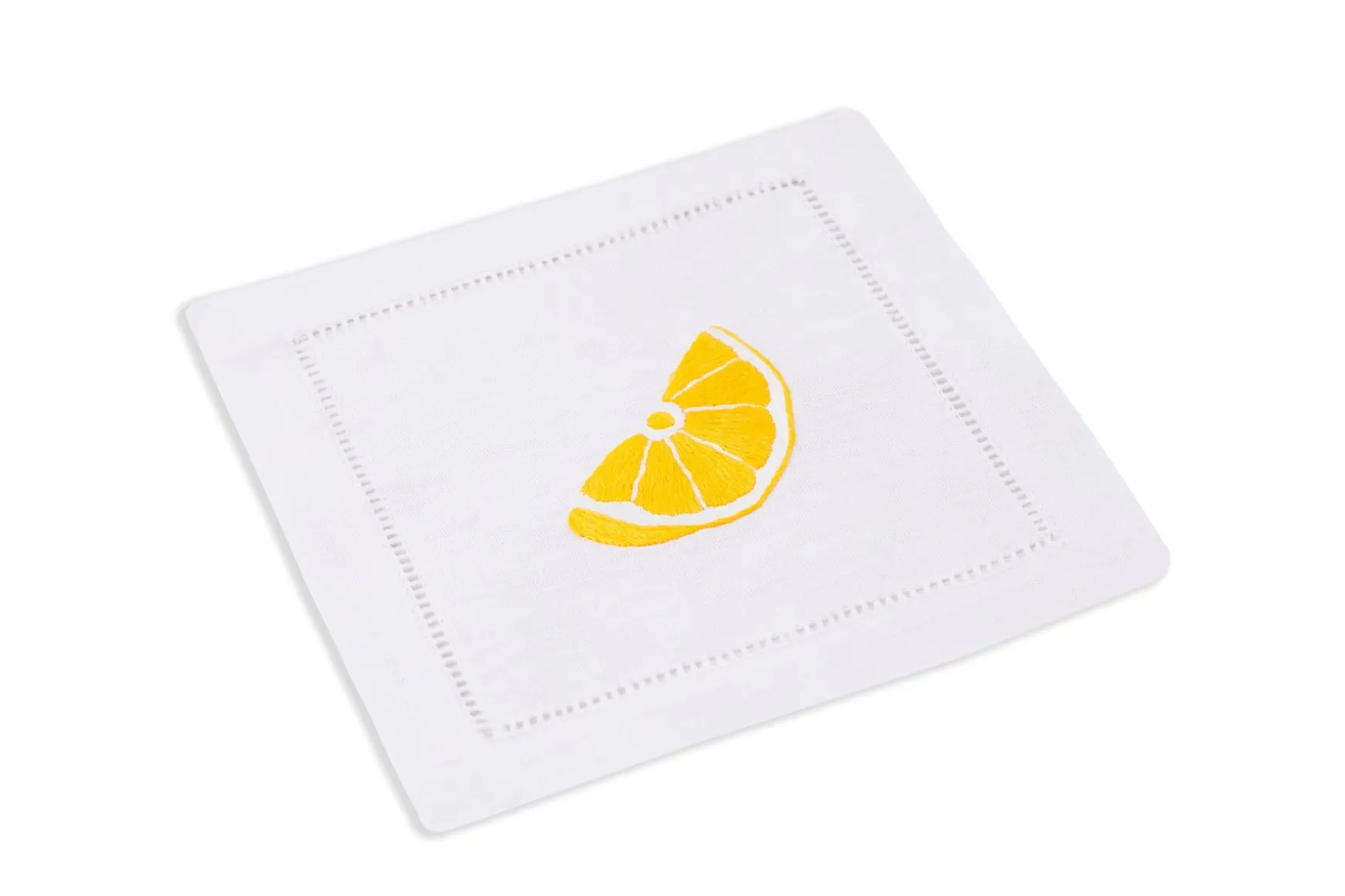 When you’re squeezing a lemon over a fresh shucked oyster, there’s little to want for … except a cocktail napkin to match the experience. In each set of four cocktail napkins, there comes two embroidered lemon wedges and two open oysters.