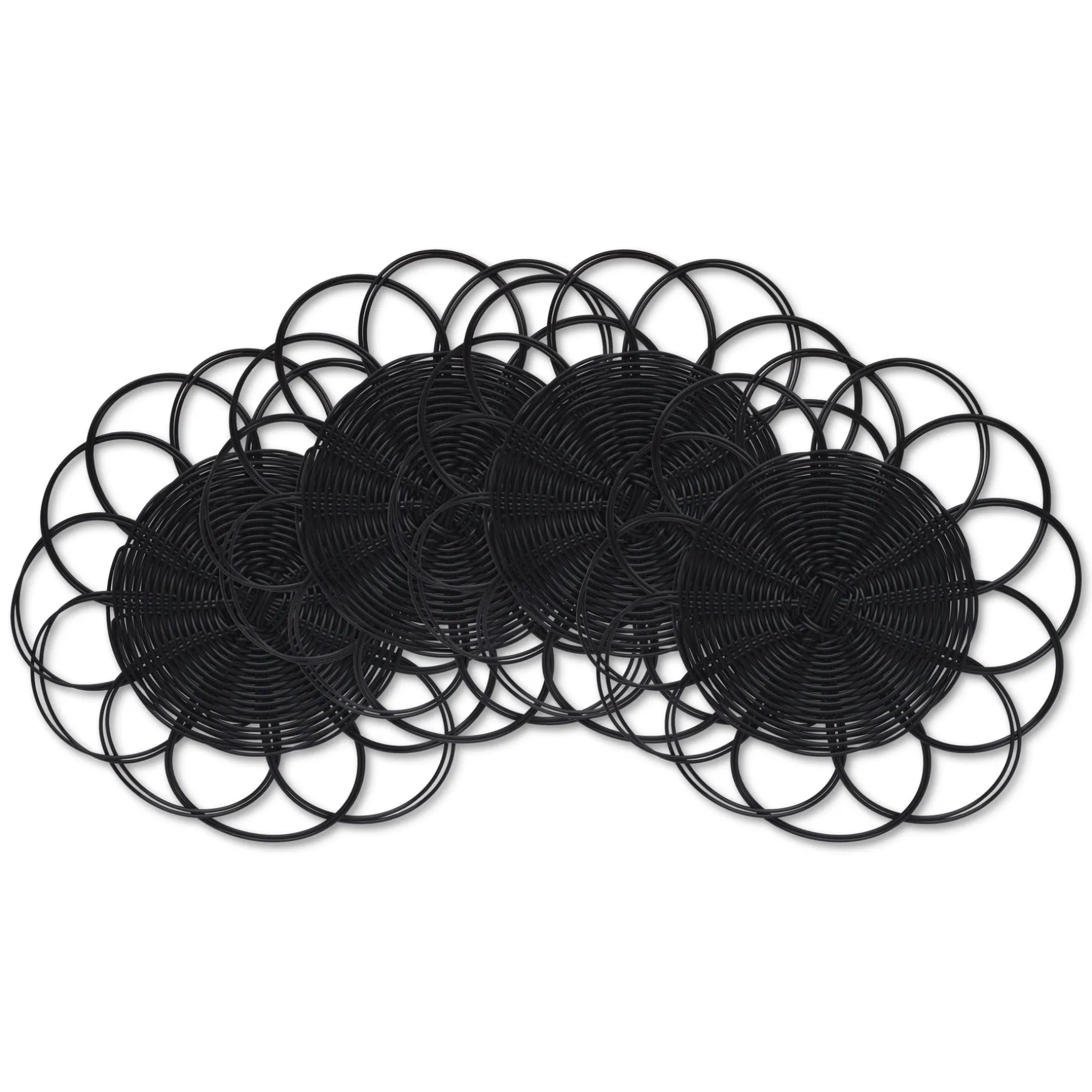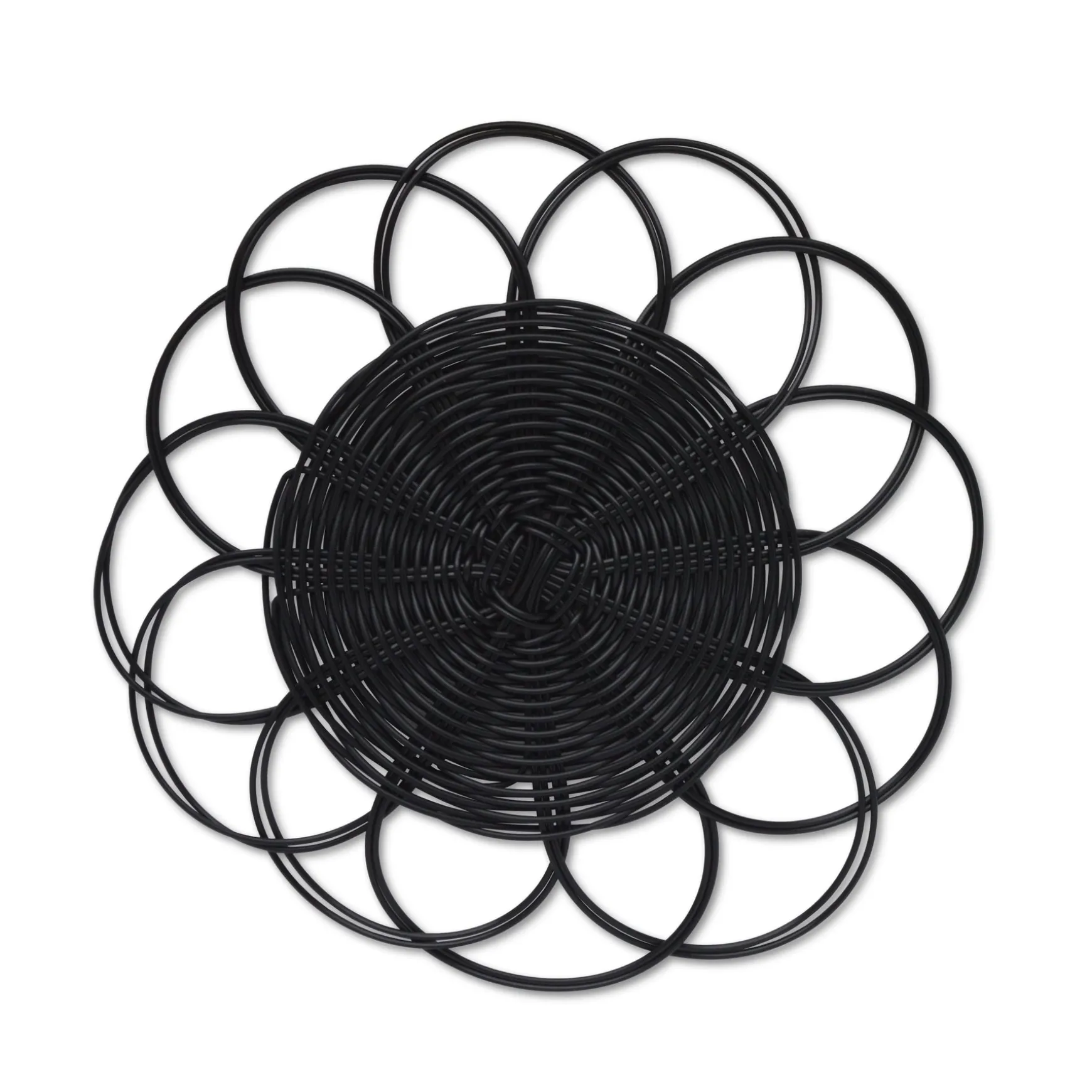 Hand-woven hoop-shaped chargers in black color for easy entertaining.