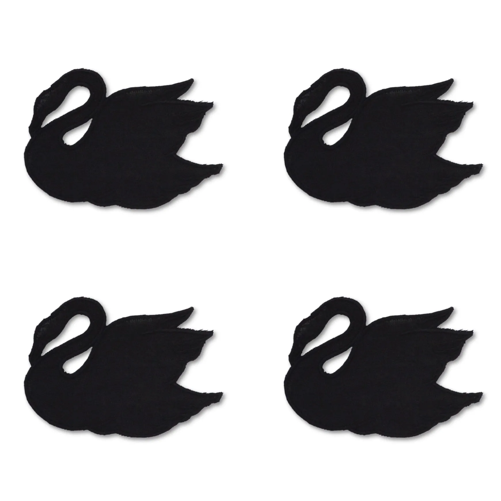 Black swan-shaped linen cocktails for a Truman Copote Swan-themed party.
