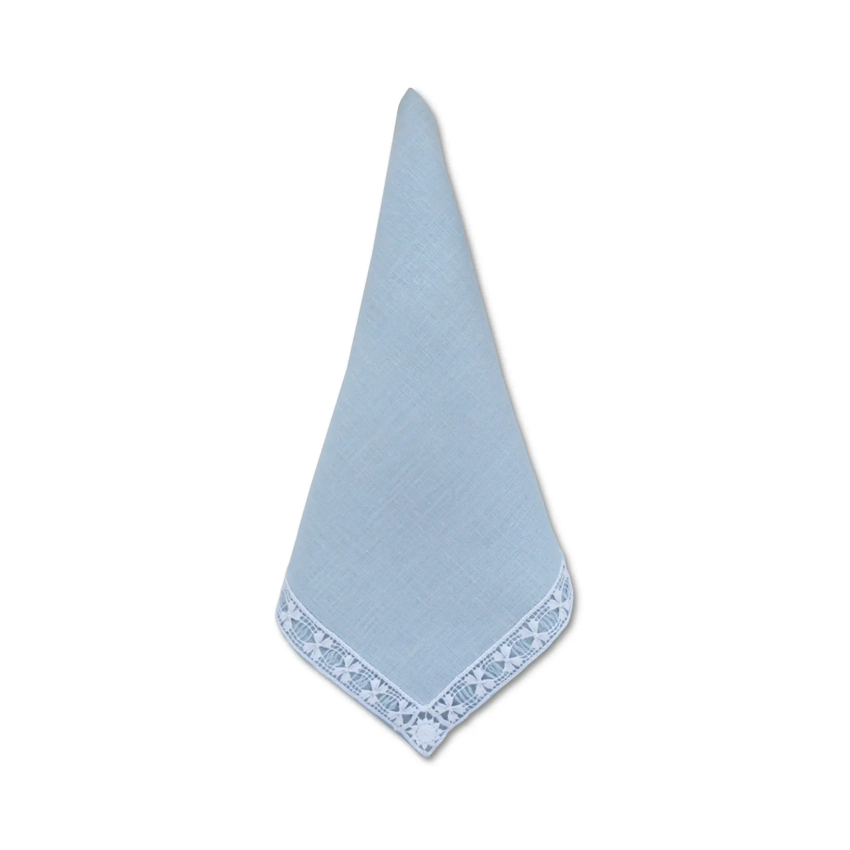 A set of dinner napkins featuring a timeless white handmade border