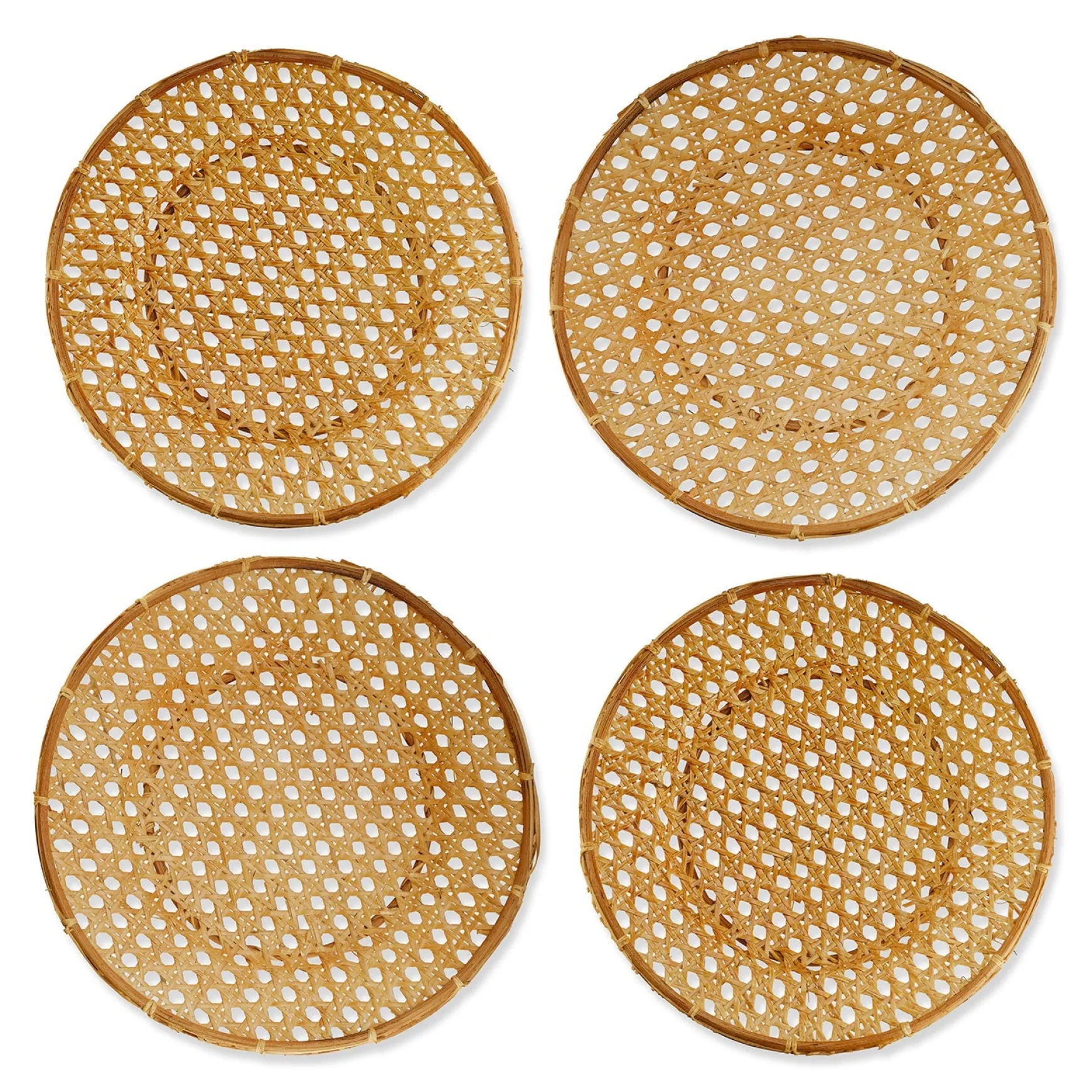 As these cane chargers are made by hand, expect variation in size, shape, and color.