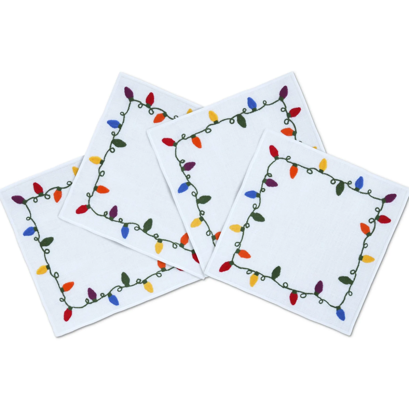 These cocktail napkins feature a Christmas lit border to match your holiday decorations.