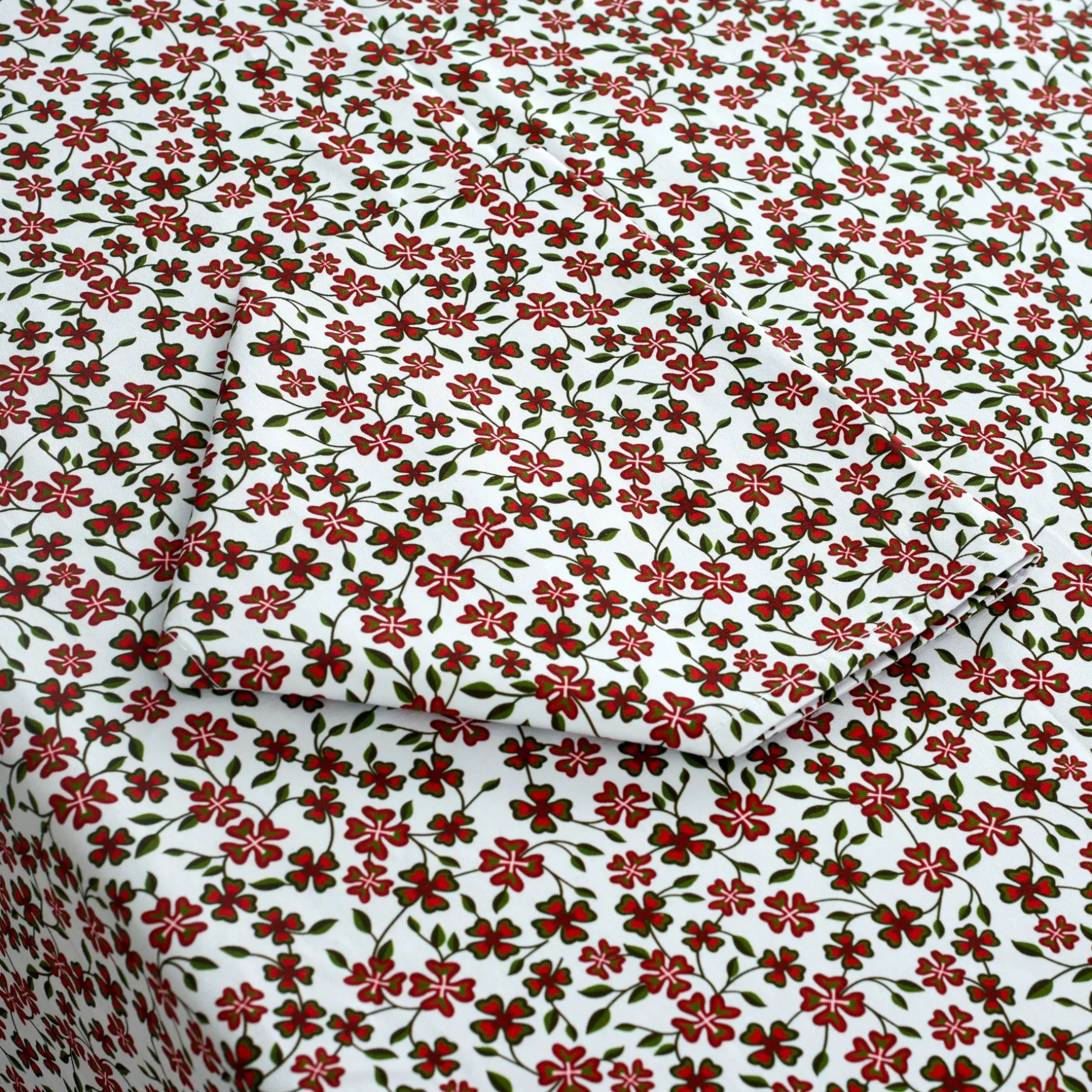 Tablecloth with four leafed clovers in festive colors.