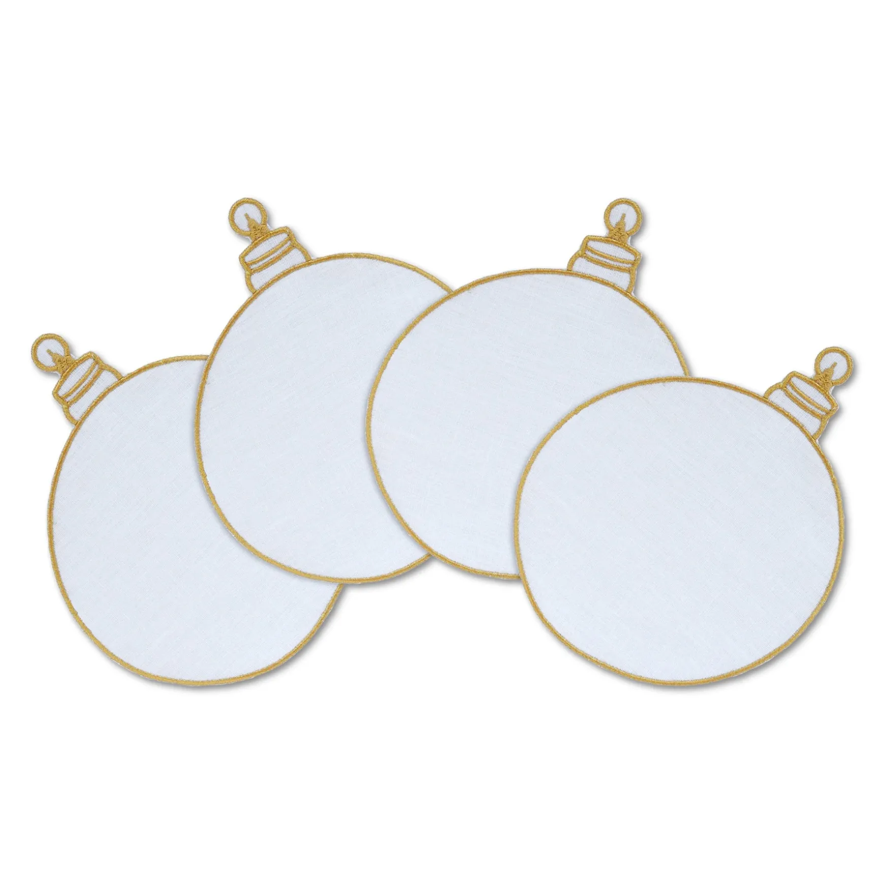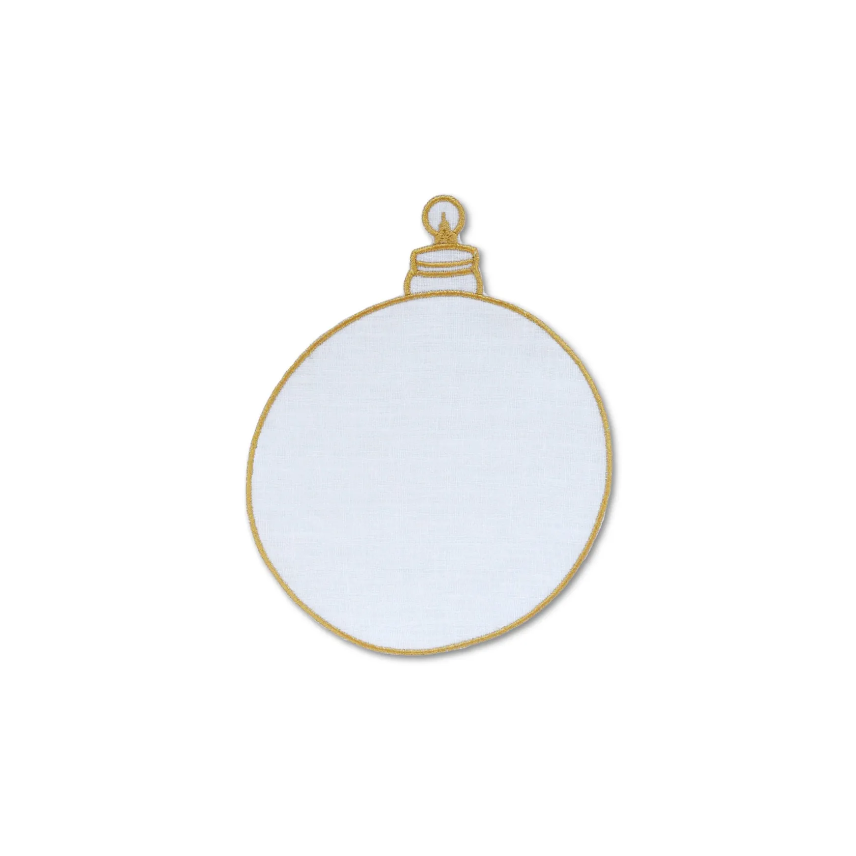 Whimsical cocktail napkins in the shape of your Christmas ornaments with a festive gold trim.