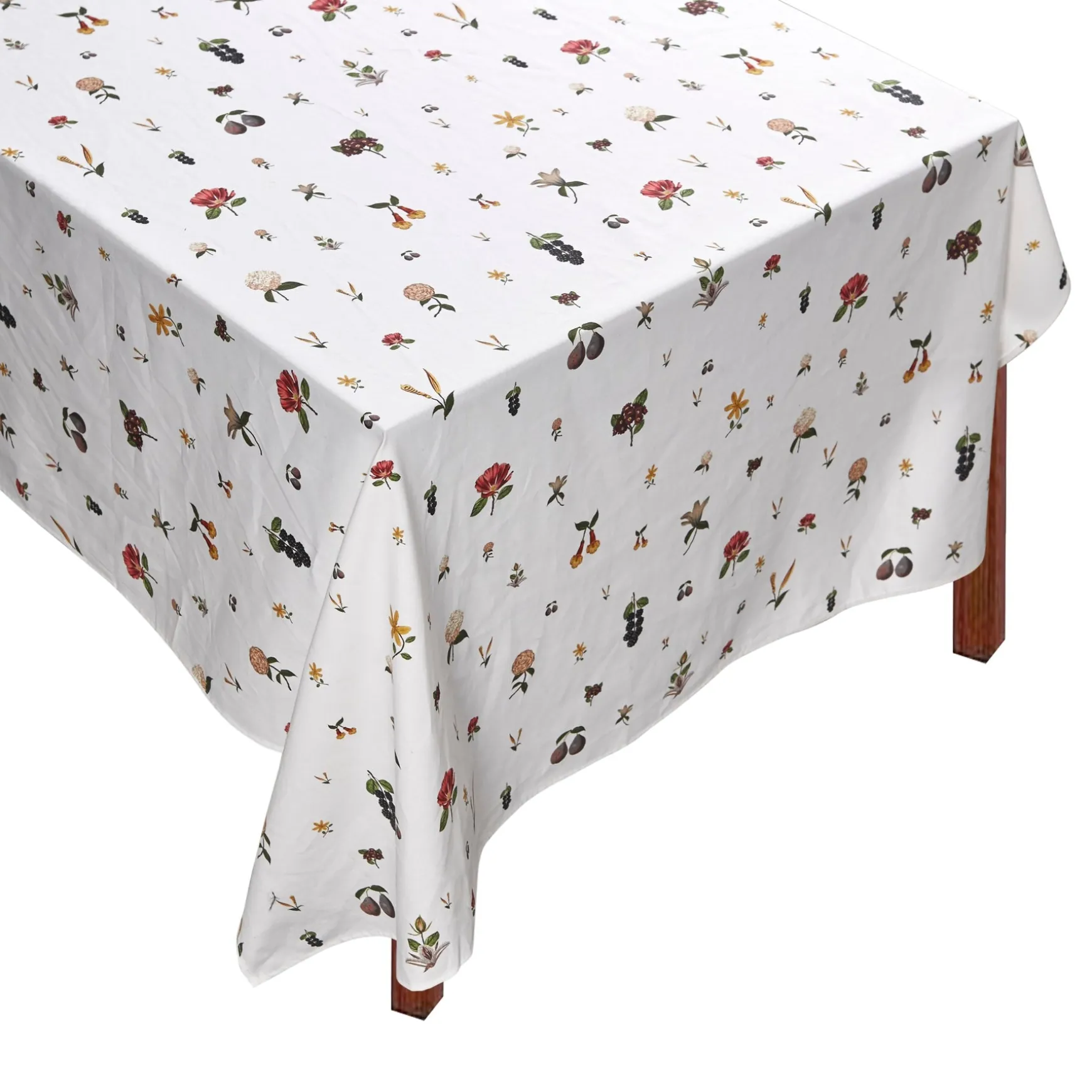 Each tablecloth is 100% cotton and finished with a straight edge. There may be minor variations across tablecloths.