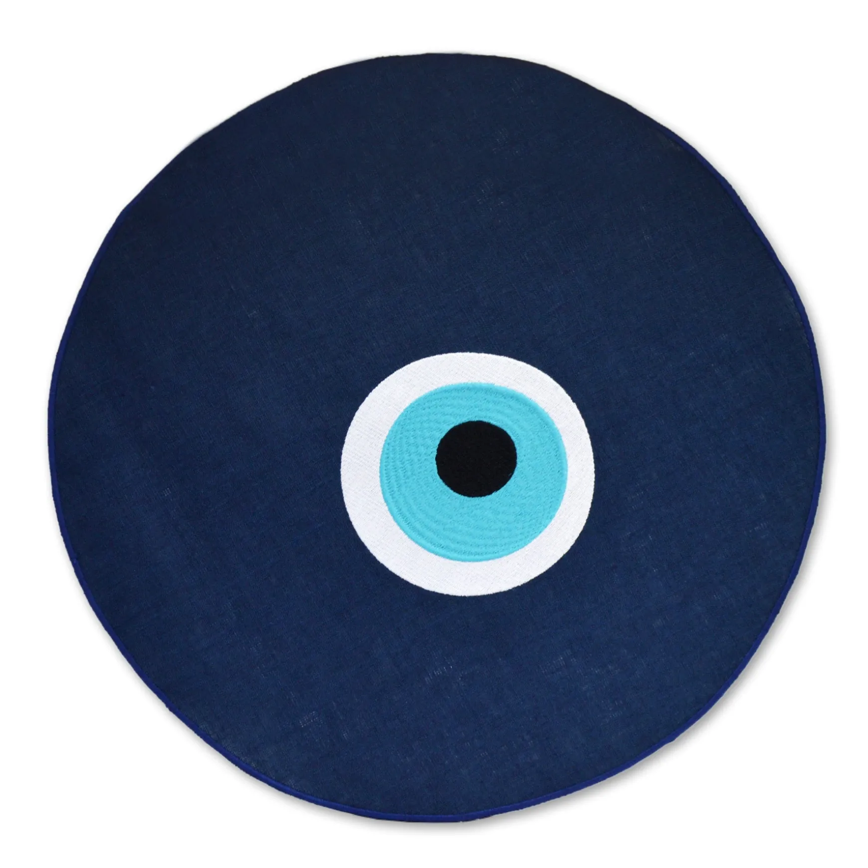 Inspired by the traditional symbolic talisman, this evil eye placemat (or challah cover) creates an impressive effect on your table.