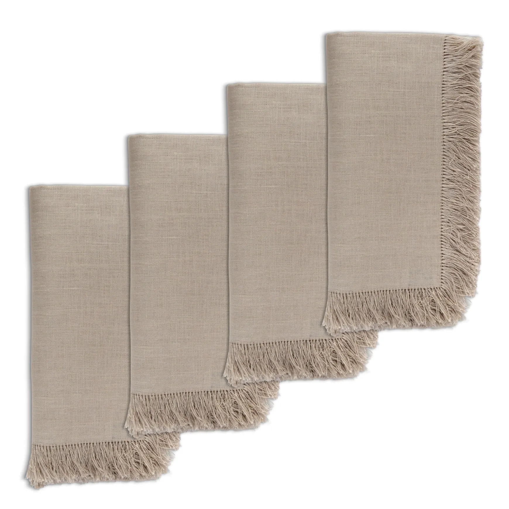 Classic beige dinner napkins with a fringe edge. A colorway that works for every day from Thanksgiving to Easter and back.