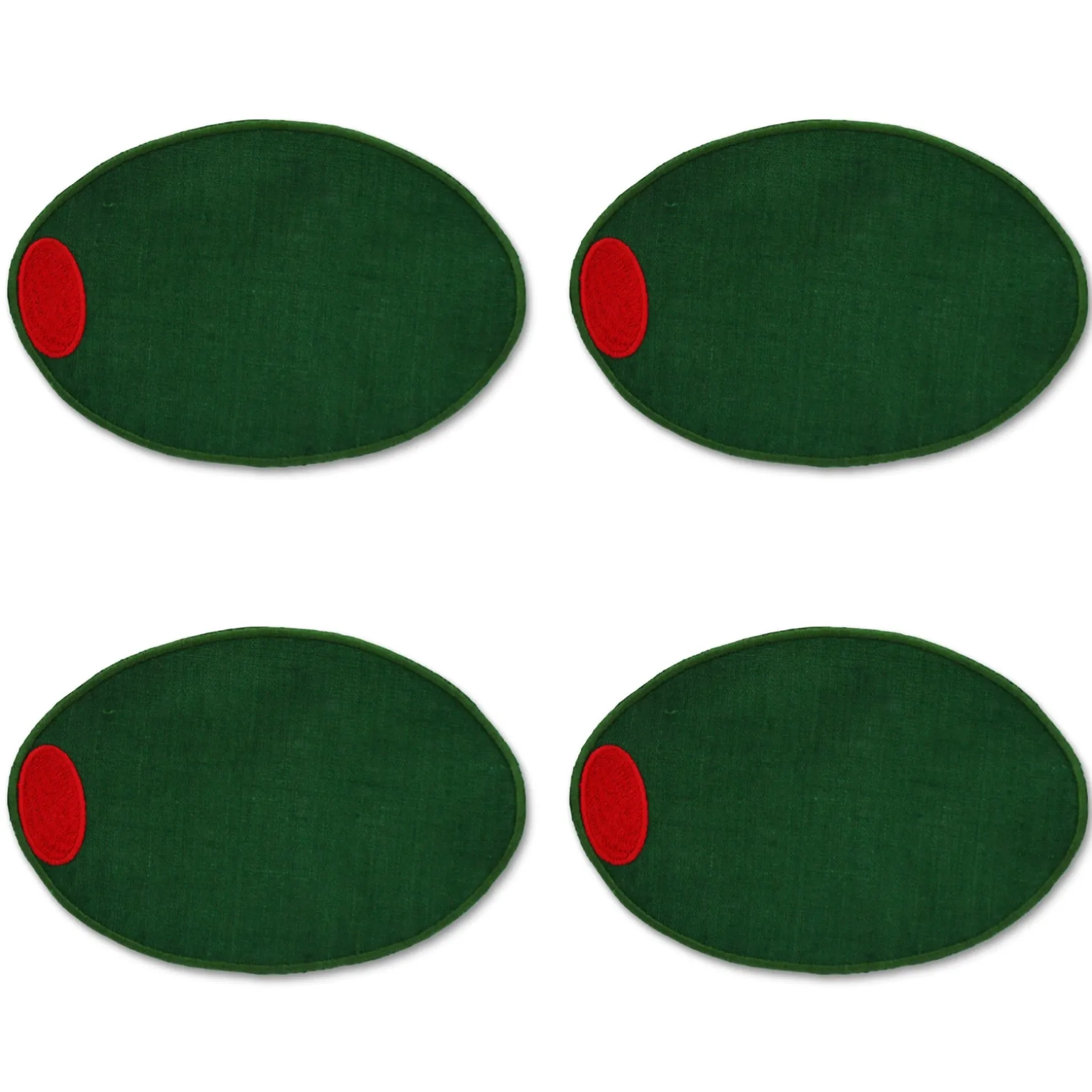 Cocktail napkins for martini lovers in the shape of a green martini olive.