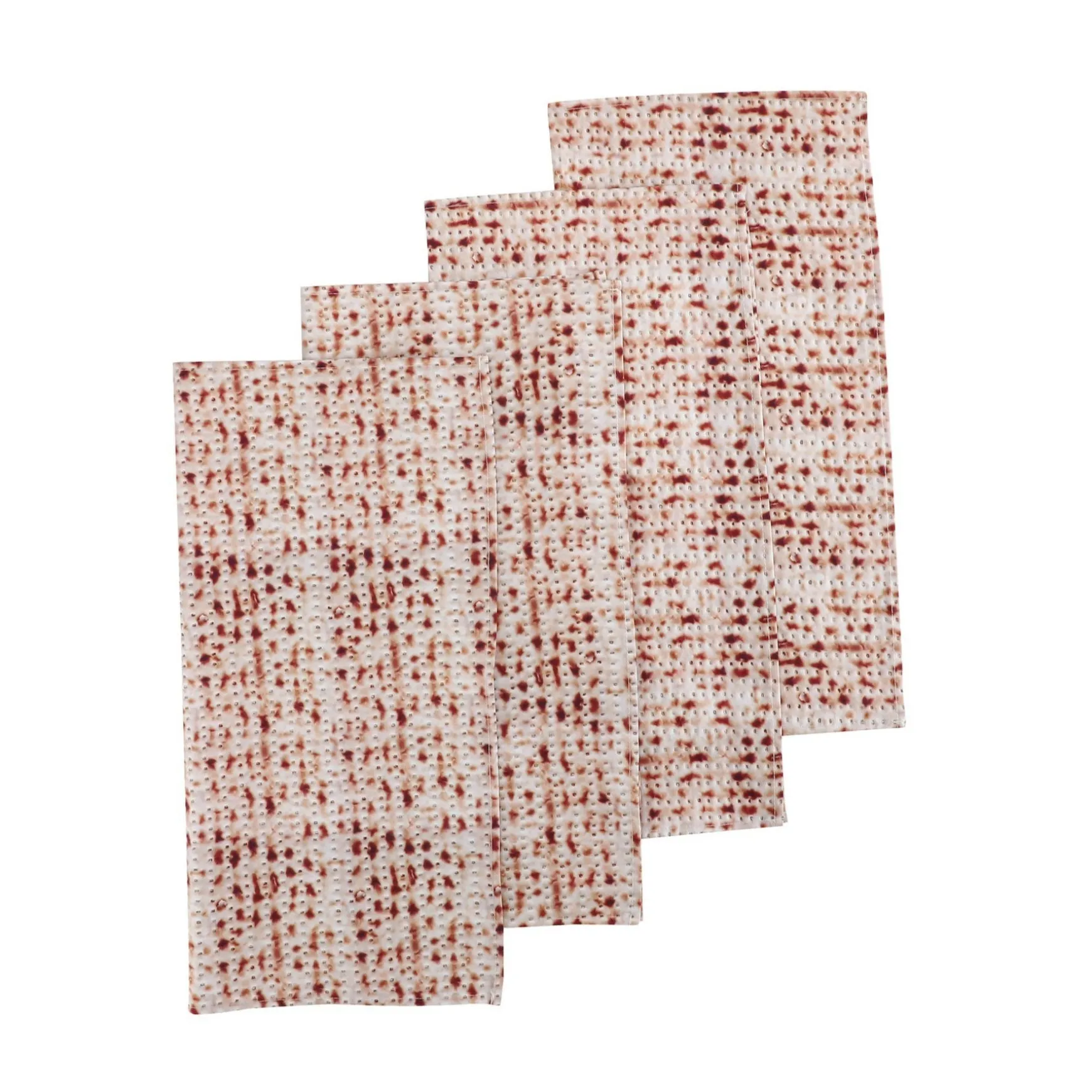 This set of 4 matzah cracker printed, square napkins are 18 inches x 18 inches.