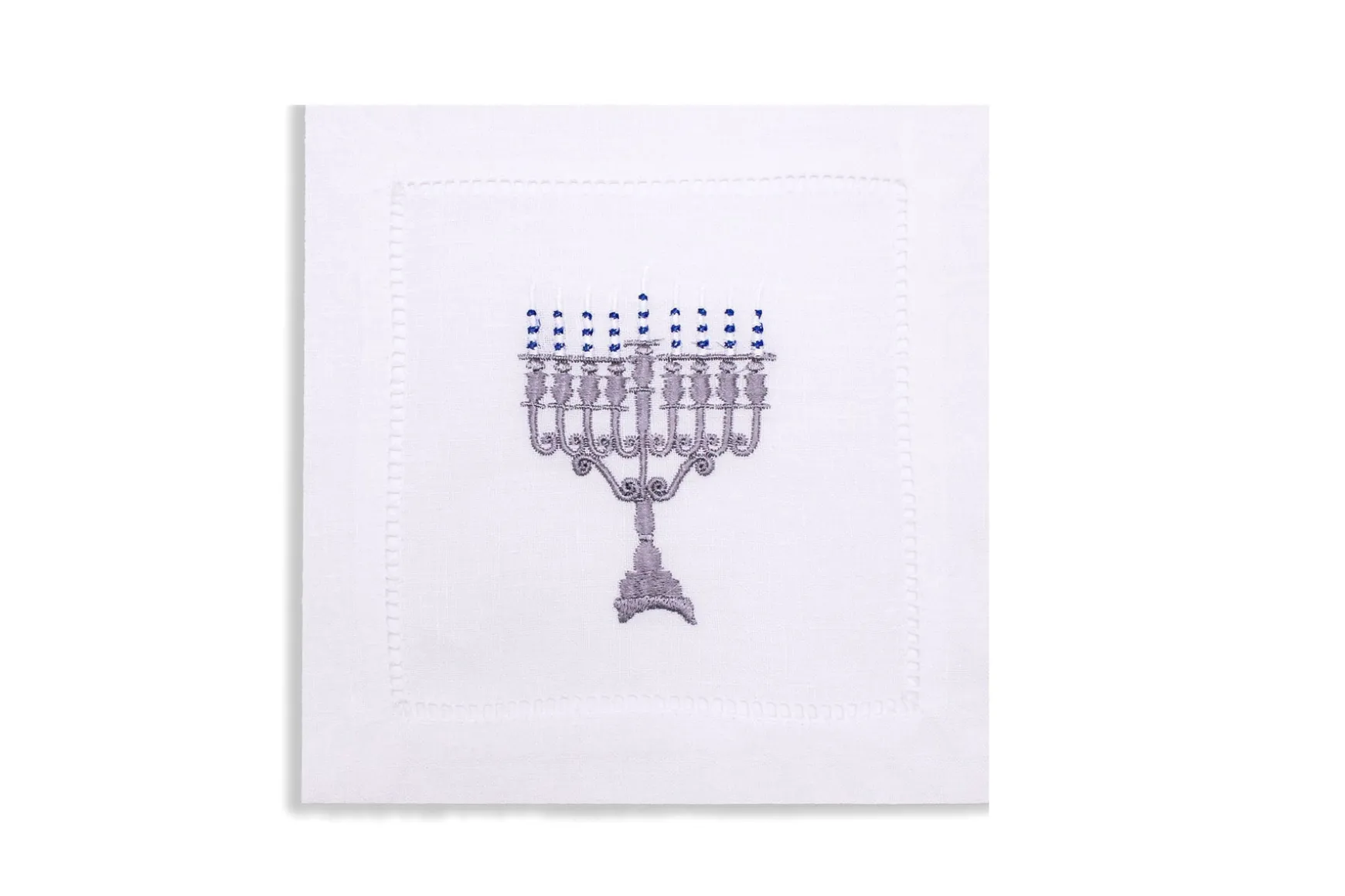 This set of cocktail napkins featuring embroidered menorah is a lovely addition to a Chanukah celebration