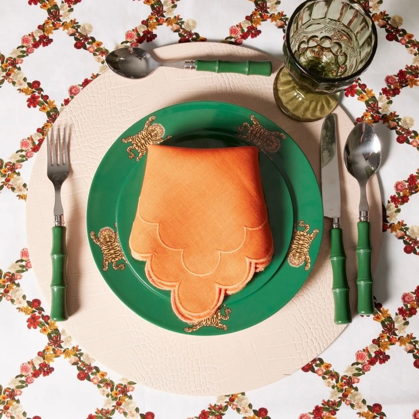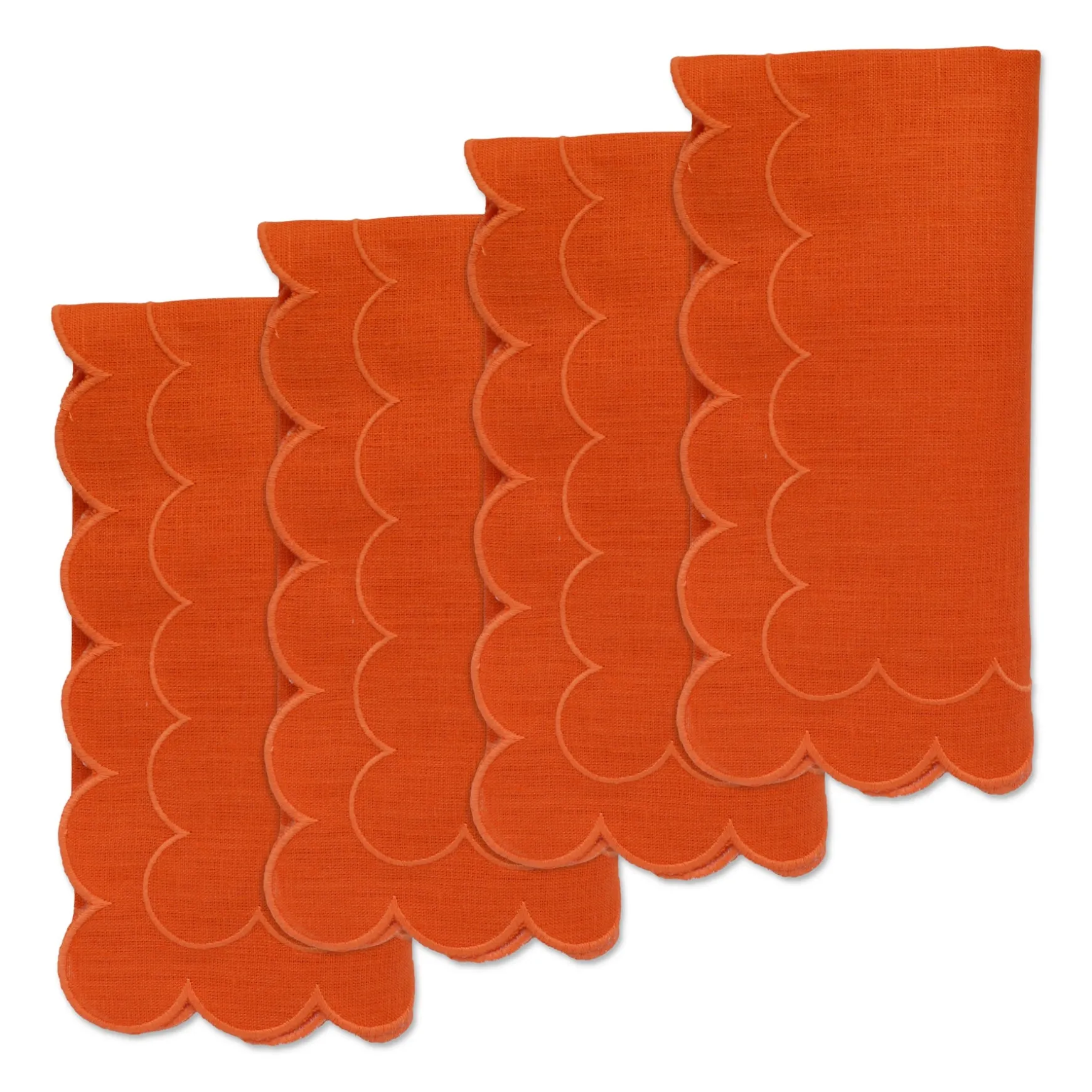 A set of dinner napkins featuring a timeless rounded scalloped edge