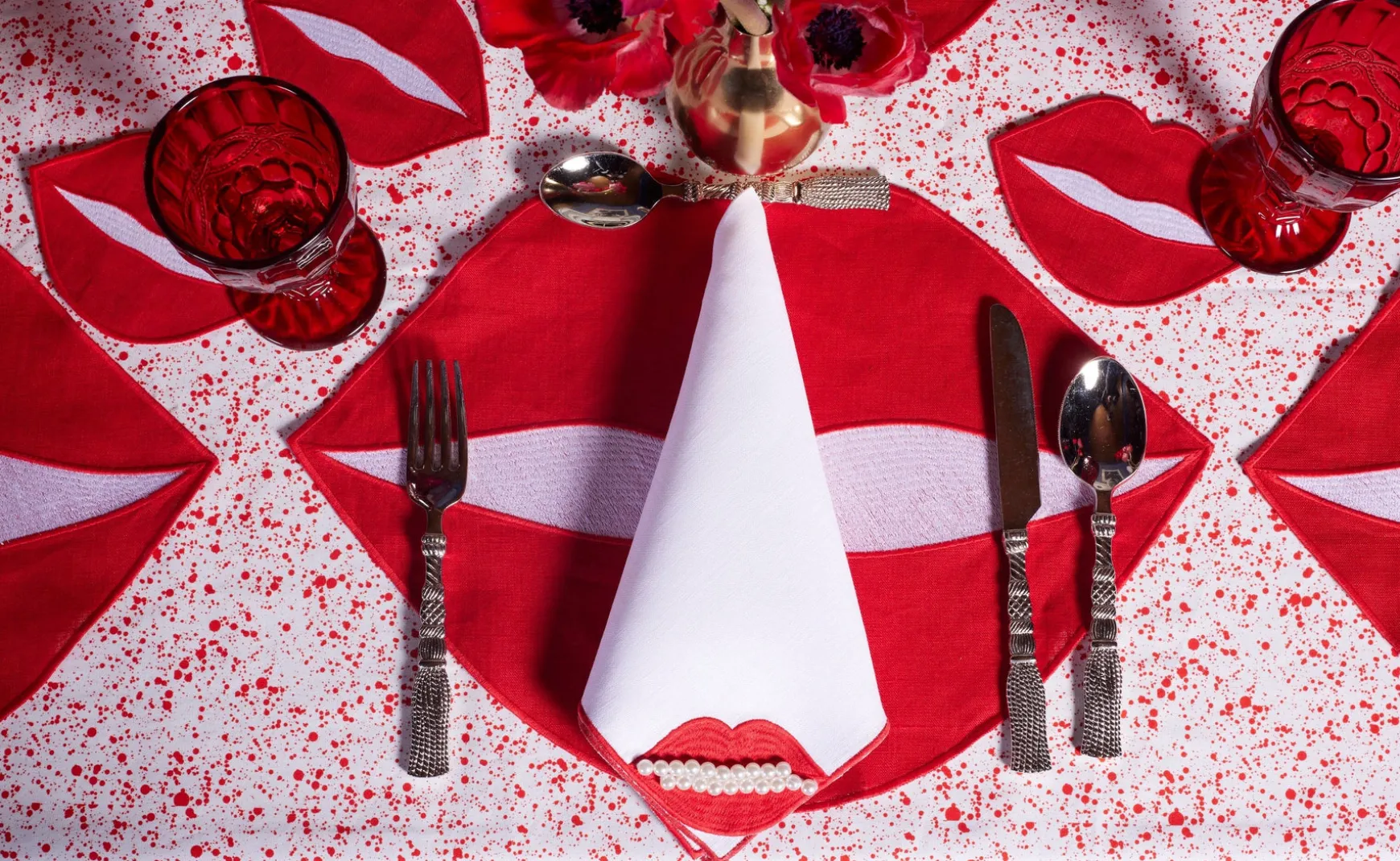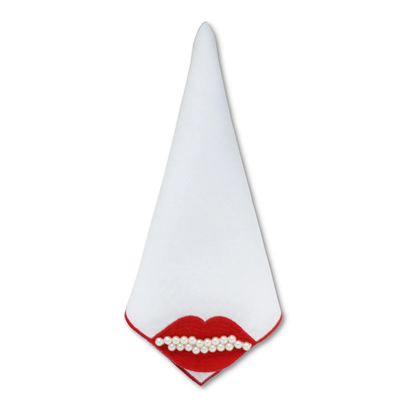 These “Lips” dinner napkins are the perfect addition to any Girls’ Night, Valentine’s party, or for those who love to be fabulous every day! Embellished with pearl beads, these dinner napkins are girly but also reference Dalí’s surrealist jewelry.