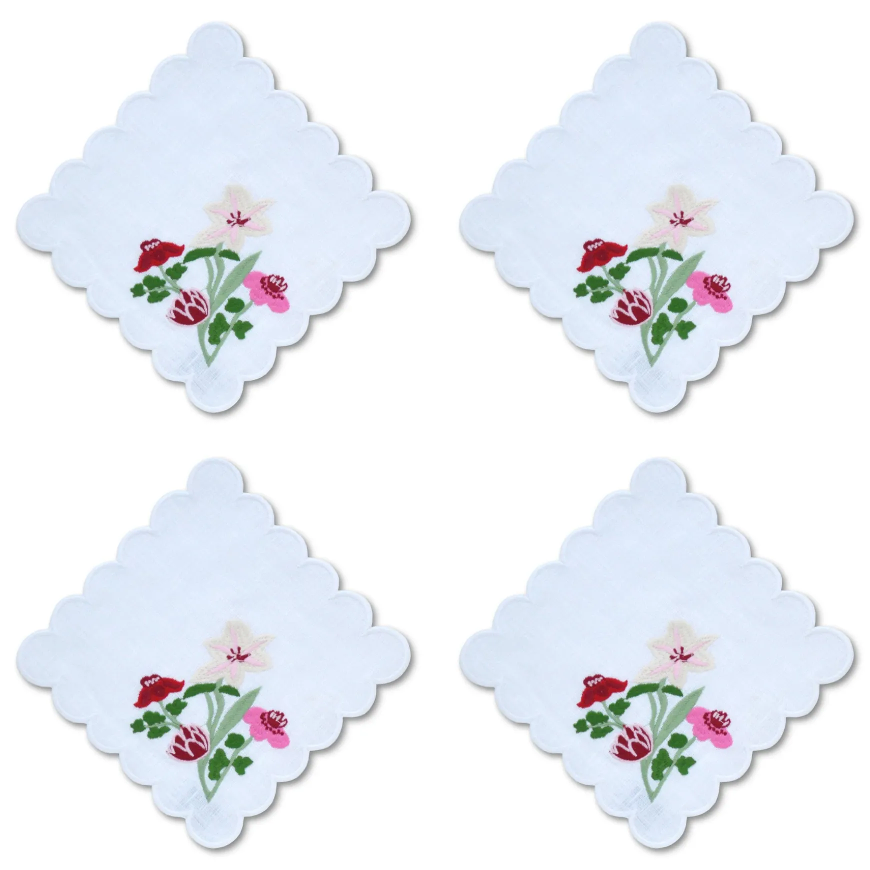 — Embroidered White Linen Napkins.