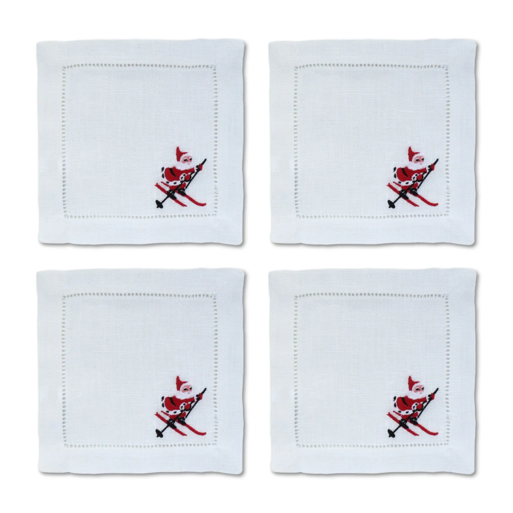 Embroideries of Santa Claus on skis for a Christmas holiday party in the mountains