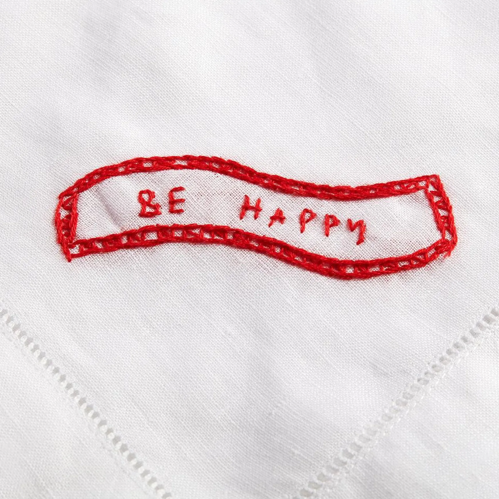 — Linen napkins, embroidered with cotton thread.