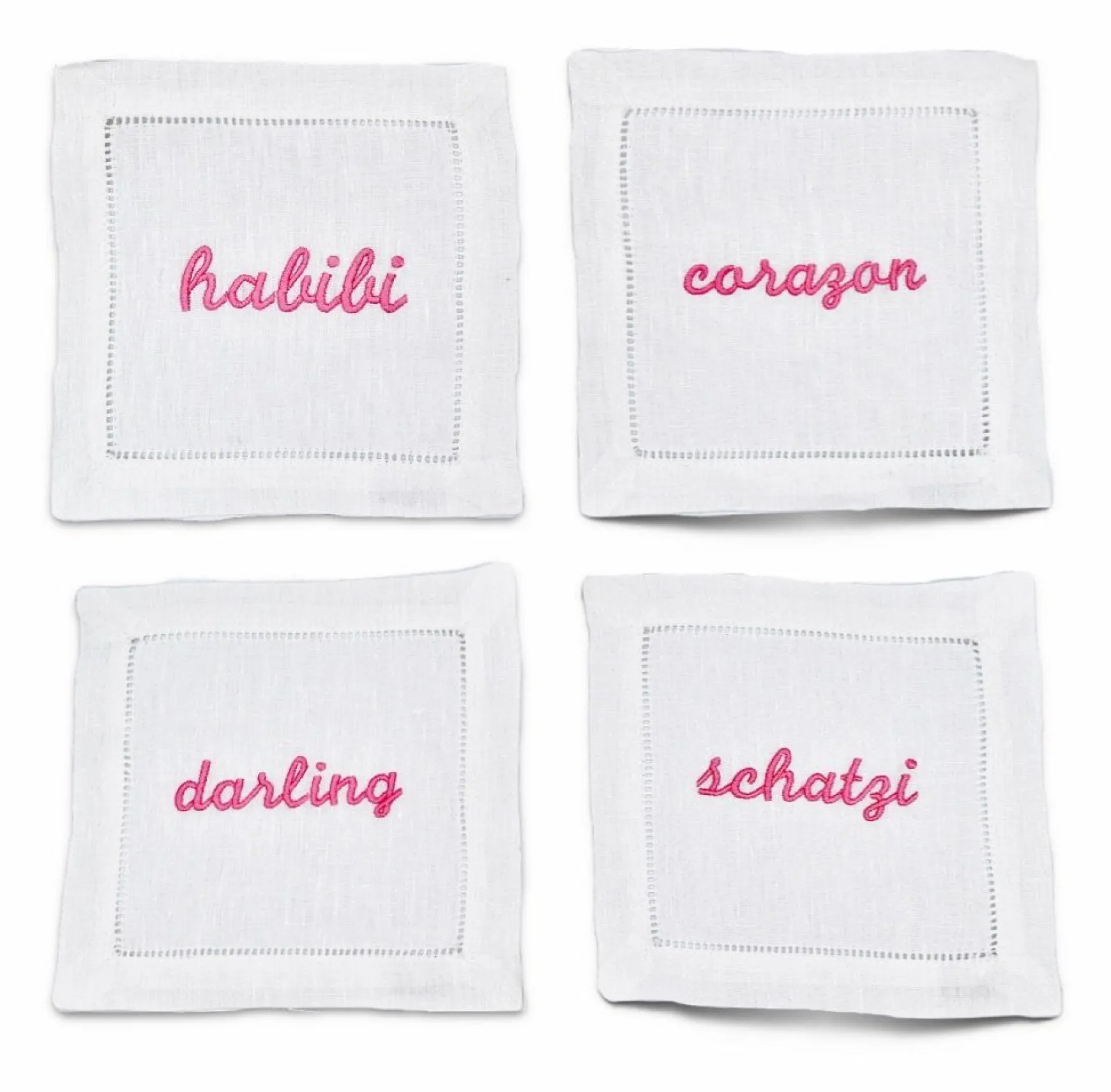 A perfect napkin set for your dear one! There’s a napkin to say “darling” in English, German, Arabic, and Spanish.