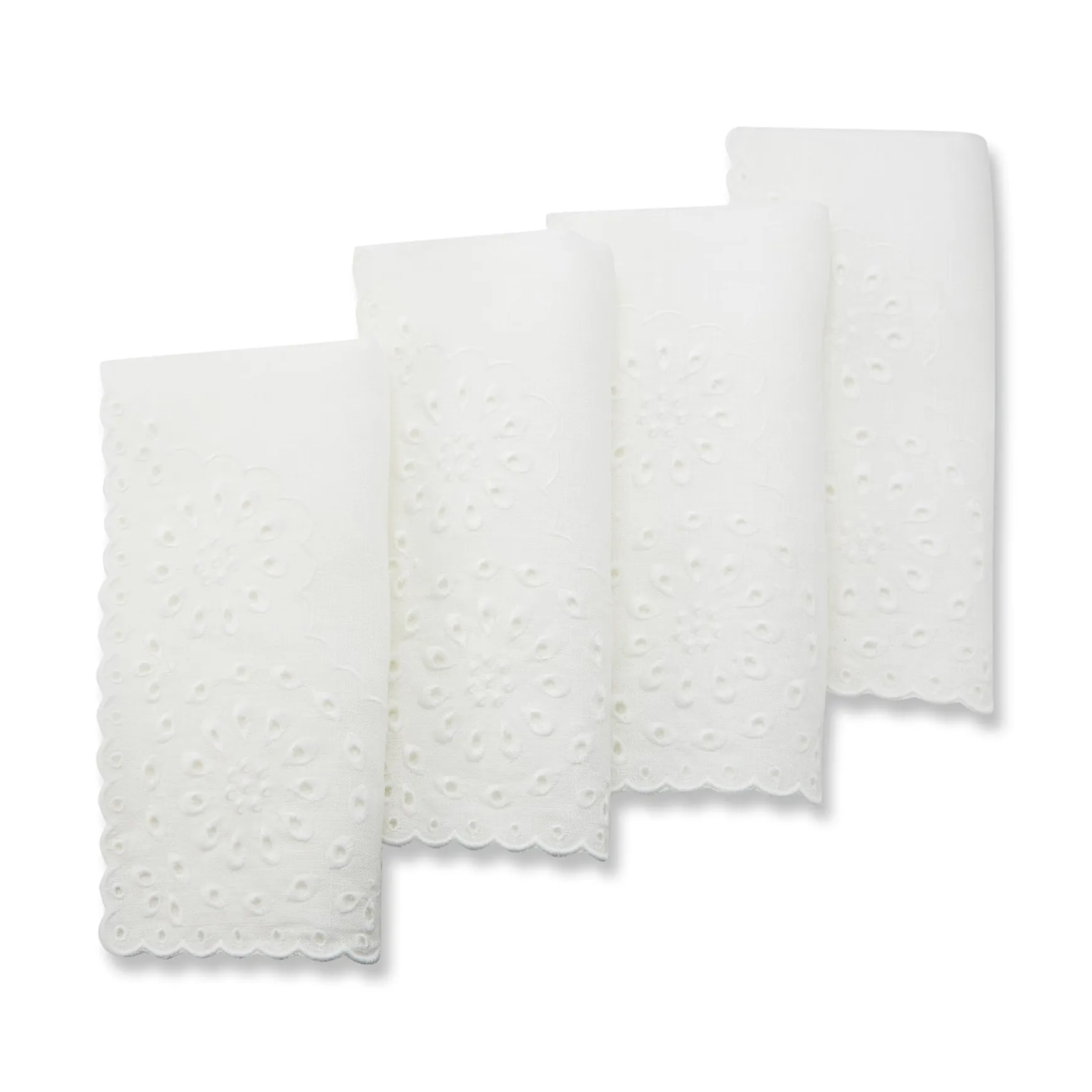 A set of dinner napkins featuring a timeless elegant eyelet pattern