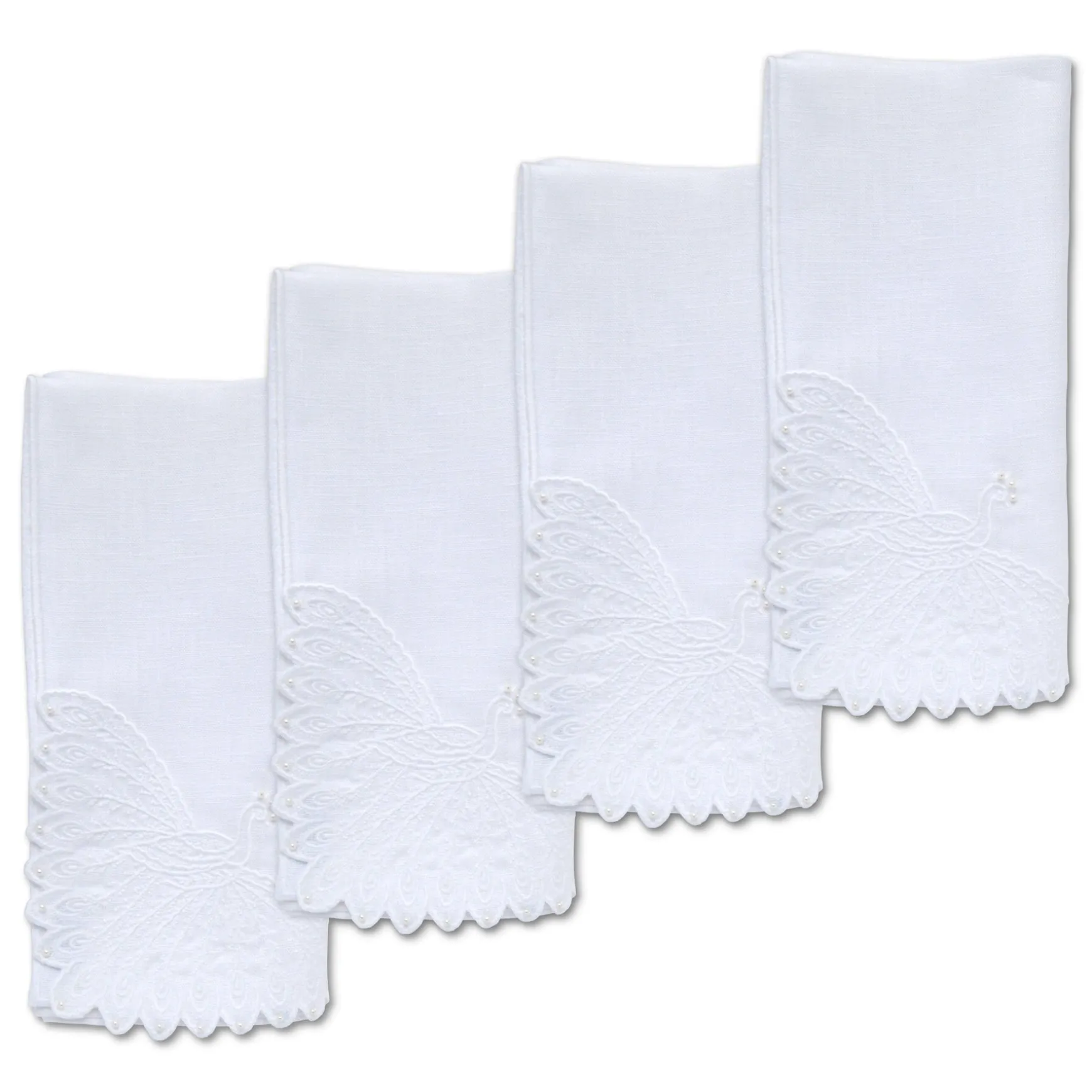 A set of dinner napkins featuring an albino peacock! Lovely for bridal shower or prenuptial celebrations.