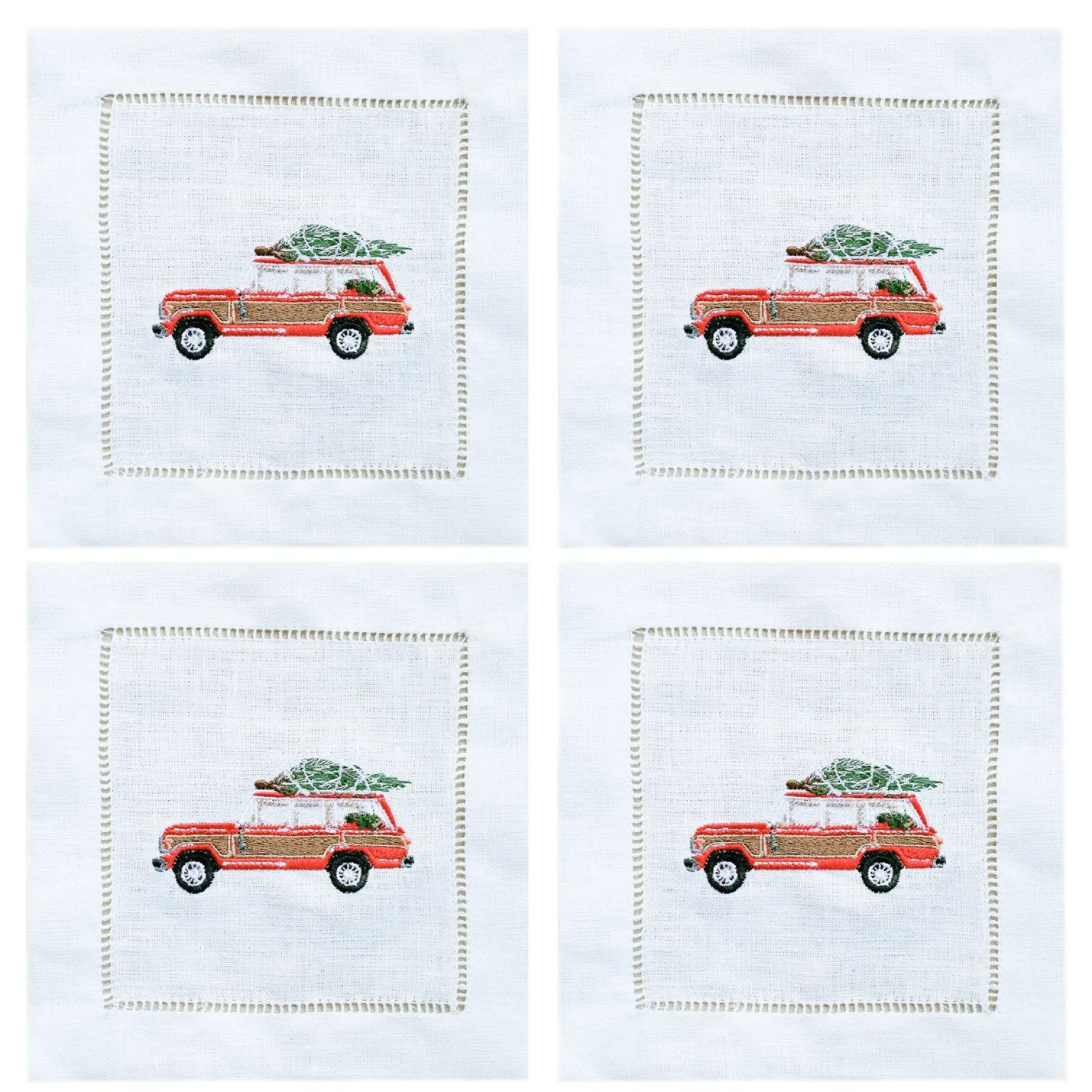 The perfect cocktail napkin to celebrate the inauguration of this year’s Christmas tree, after it is unloaded from the beloved old Jeep Woody.